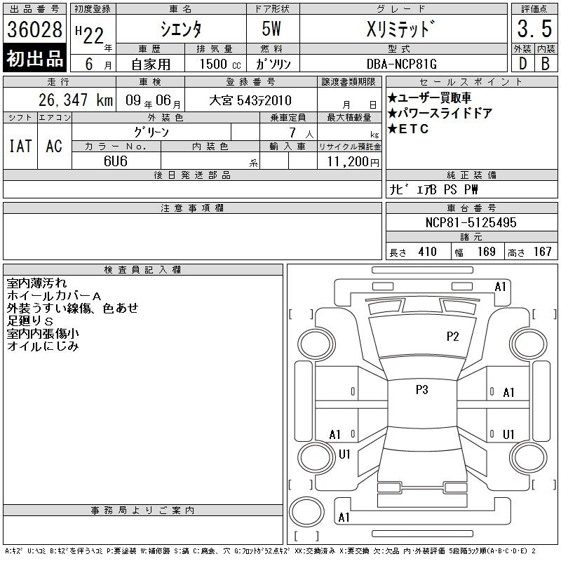 Toyota Sienta, 2010 года - Лот№36028 ★3.5