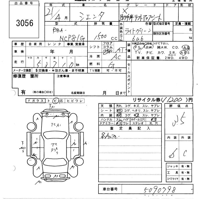 Toyota Sienta, 2009 года - Лот№3056 ★3.5