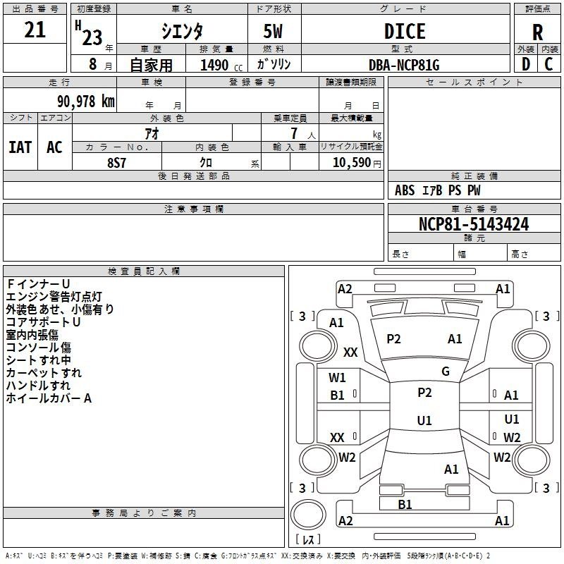 Toyota Sienta, 2011 года - Лот№21 ★R