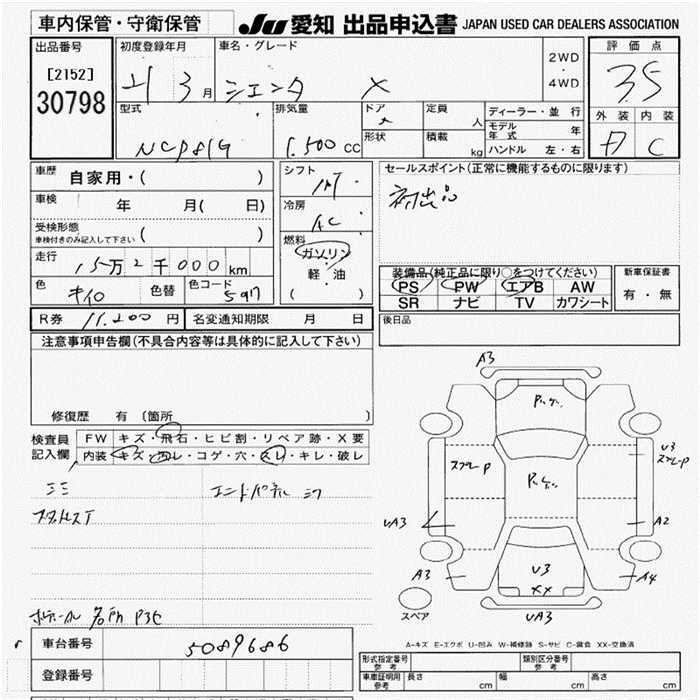 Toyota Sienta, 2009 года - Лот№30798 ★3.5