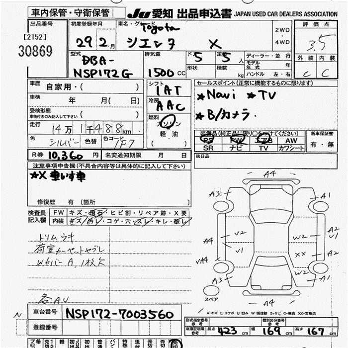 Toyota Sienta, 2017 года - Лот№30869 ★3.5