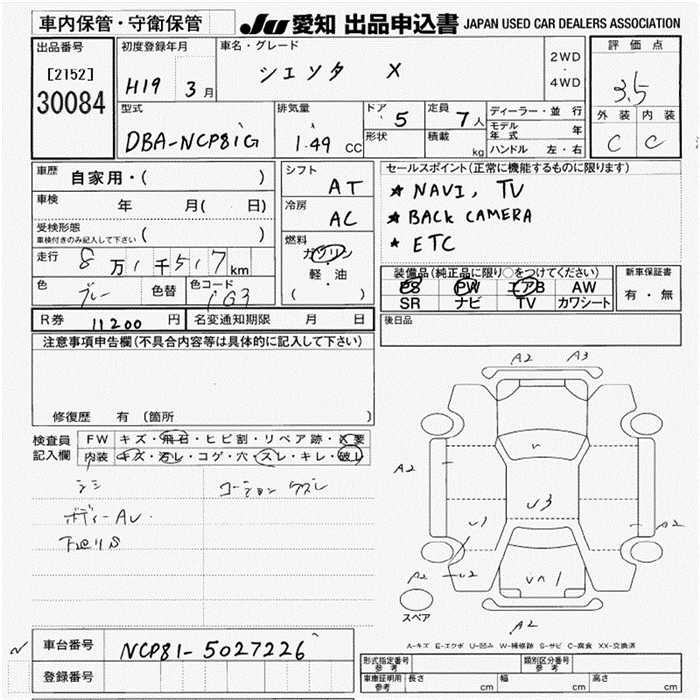 Toyota Sienta, 2007 года - Лот№30084 ★3.5