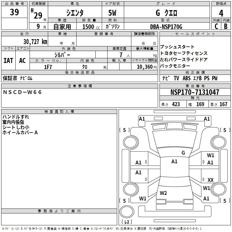 Toyota Sienta, 2017 года - Лот№39 ★4