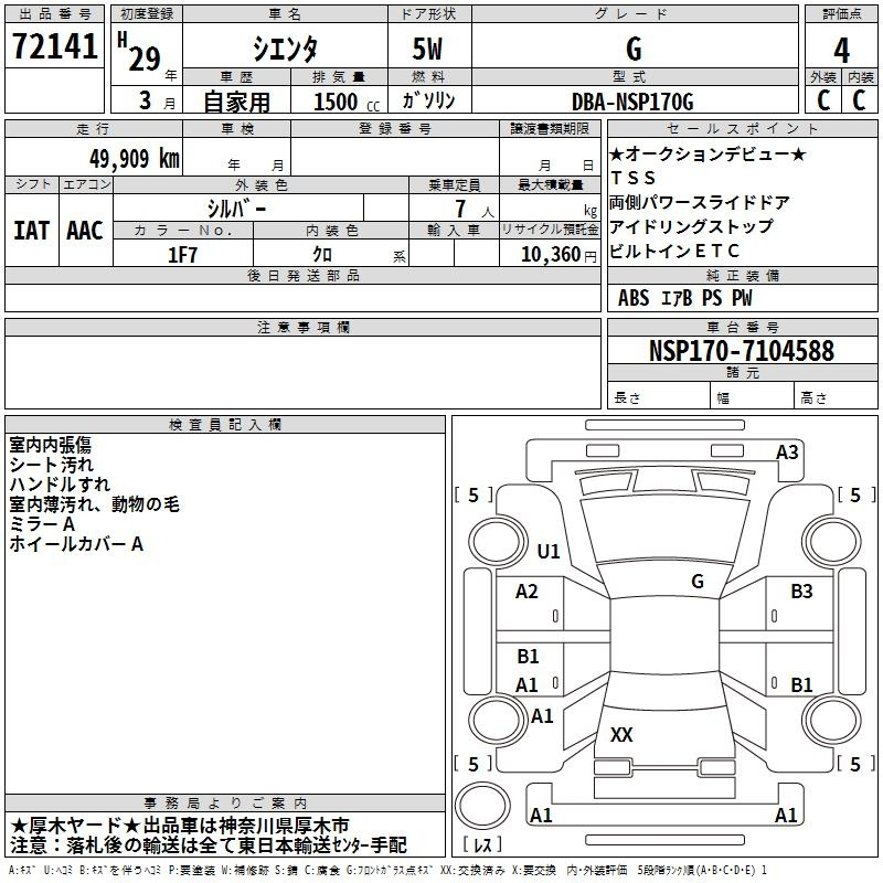 Toyota Sienta, 2017 года - Лот№72141 ★4