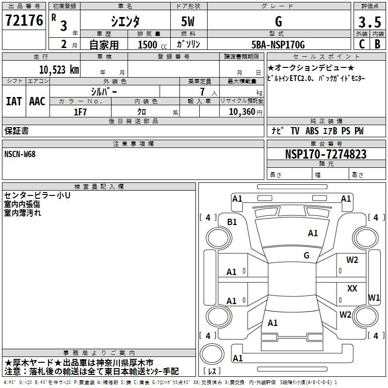 Toyota Sienta, 2021 года - Лот№72176 ★3.5