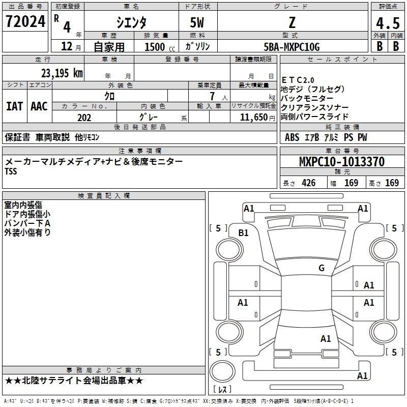 Toyota Sienta, 2022 года - Лот№72024 ★4.5