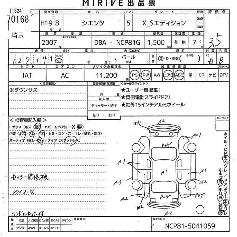 Toyota Sienta, 2007 года - Лот№70168 ★3.5
