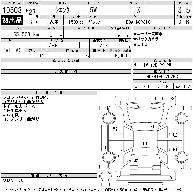 Toyota Sienta, 2015 года - Лот№10503 ★3.5