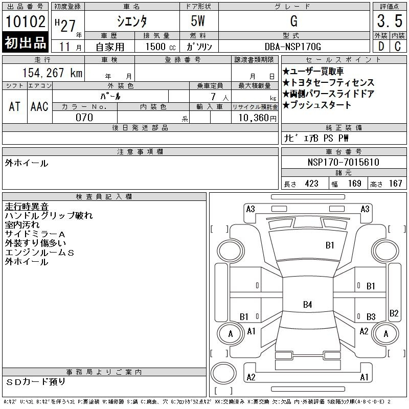 Toyota Sienta, 2015 года - Лот№10102 ★3.5