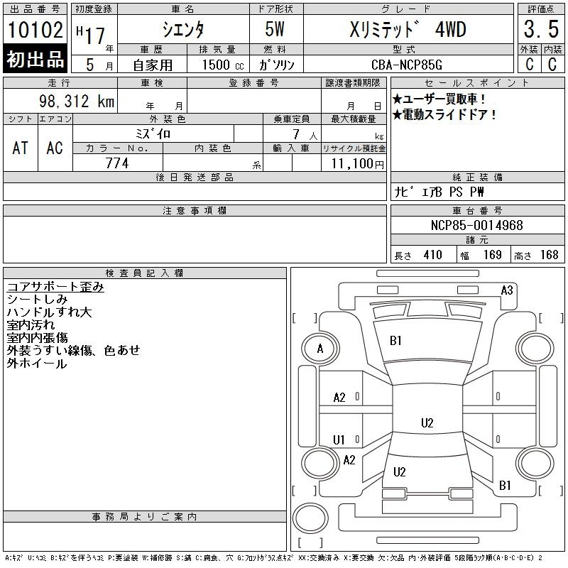 Toyota Sienta, 2005 года - Лот№10102 ★3.5