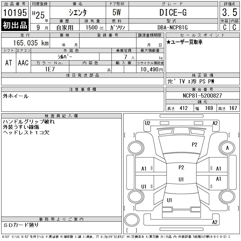 Toyota Sienta, 2013 года - Лот№10195 ★3.5