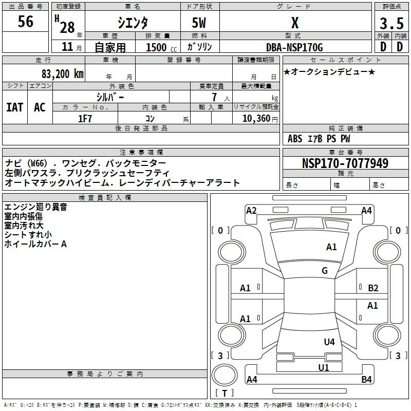 Toyota Sienta, 2016 года - Лот№56 ★3.5