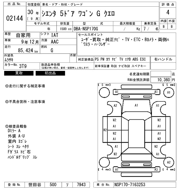 Toyota Sienta, 2018 года - Лот№2144 ★4