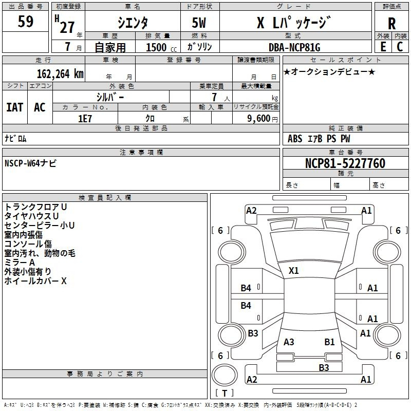 Toyota Sienta, 2015 года - Лот№59 ★R