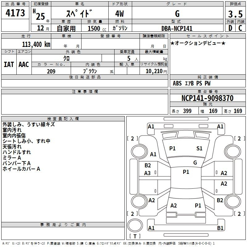 Toyota Spade, 2013 года - Лот№4173 ★3.5