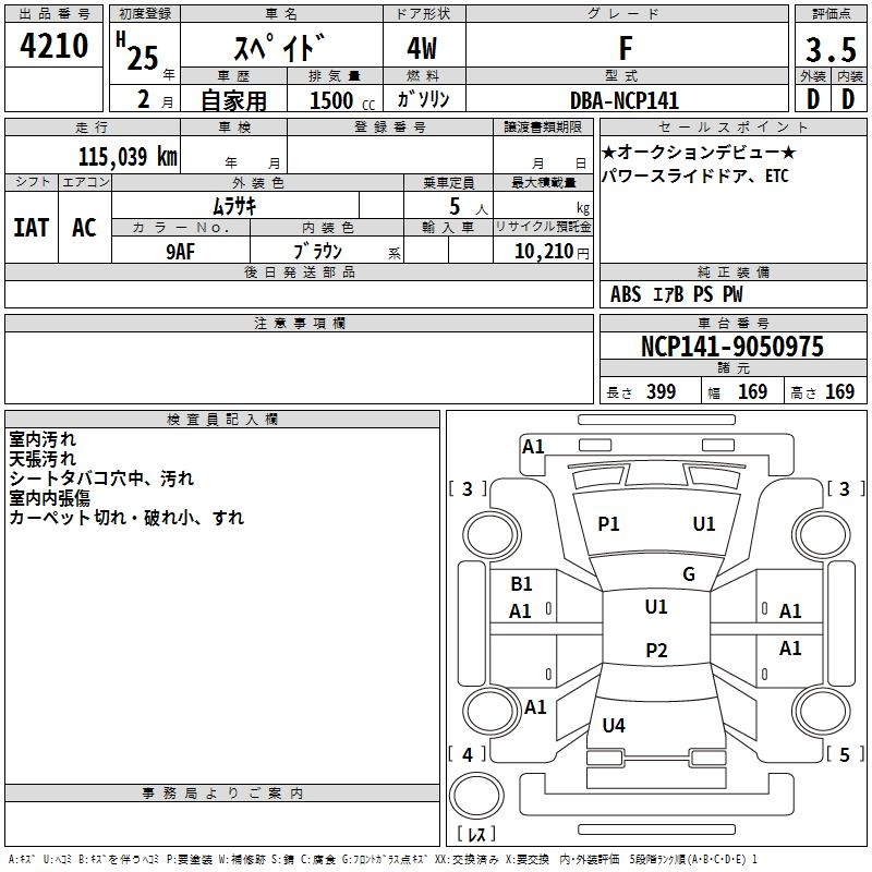 Toyota Spade, 2013 года - Лот№4210 ★3.5