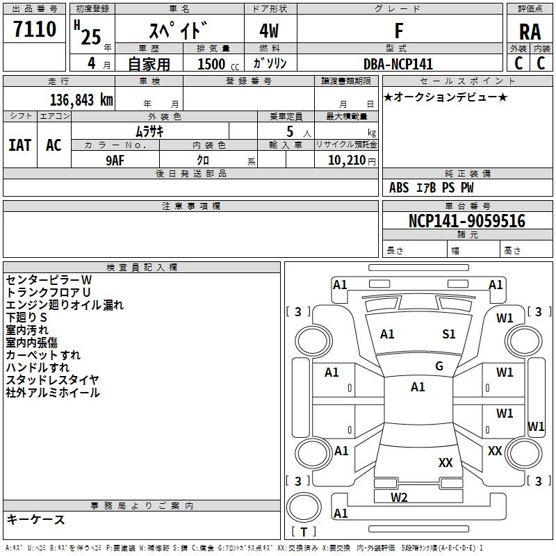 Toyota Spade, 2013 года - Лот№7110 ★RA