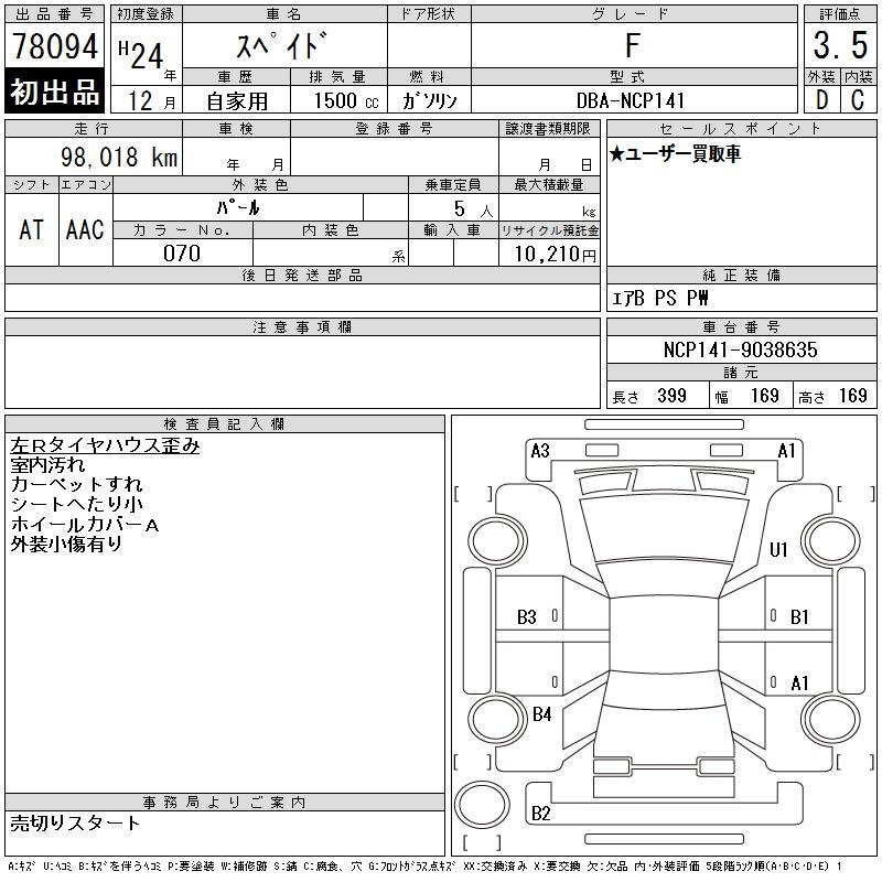 Toyota Spade, 2012 года - Лот№78094 ★3.5