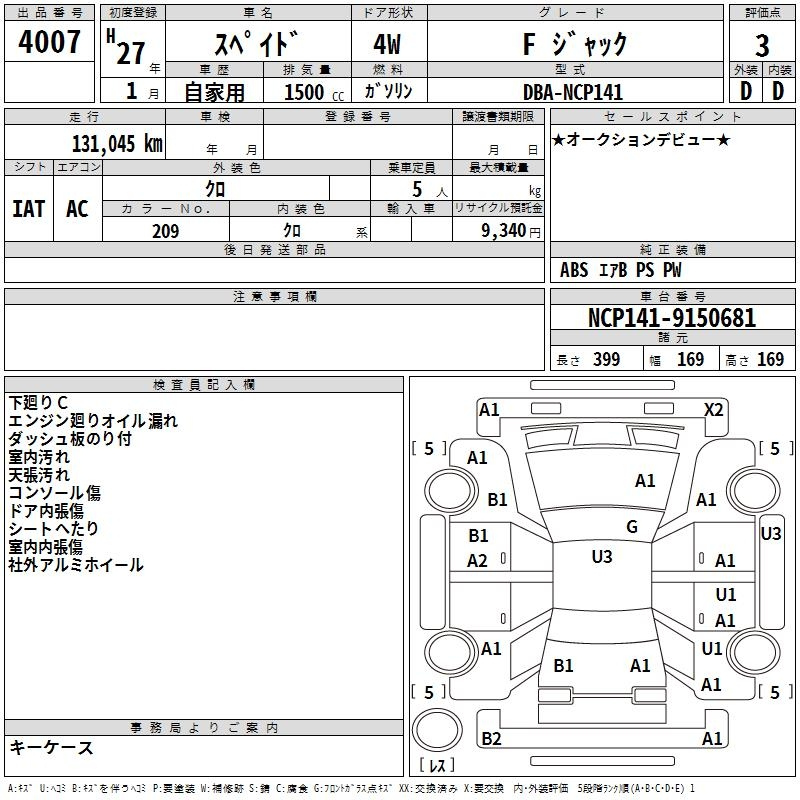 Toyota Spade, 2015 года - Лот№4007 ★3