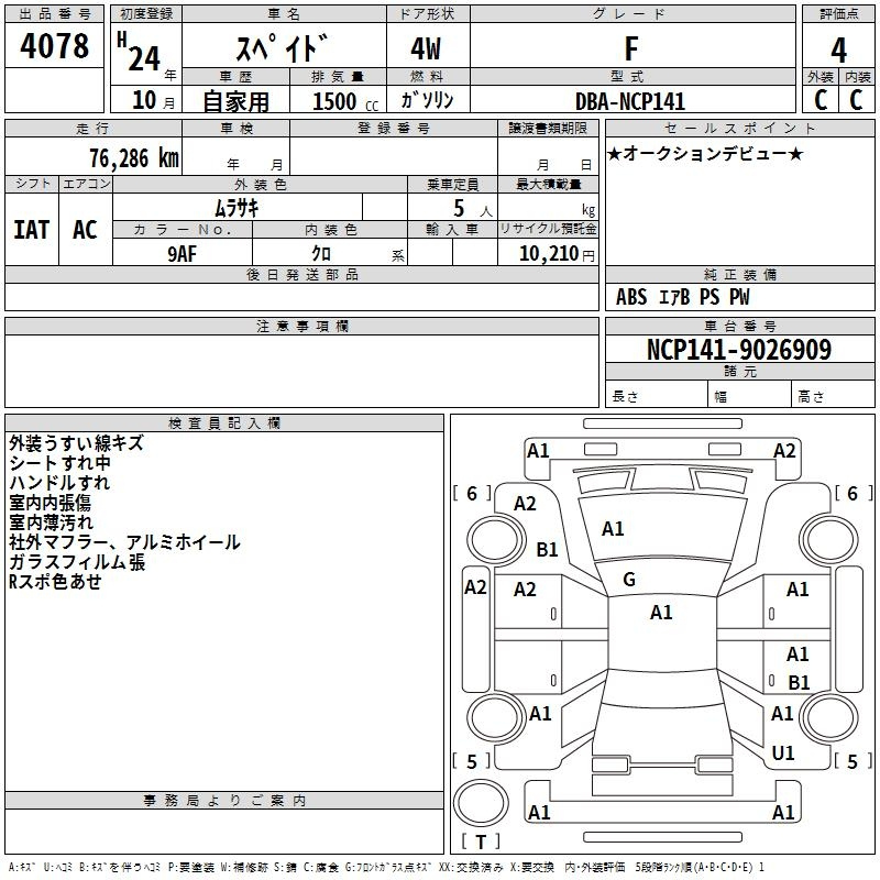 Toyota Spade, 2012 года - Лот№4078 ★4