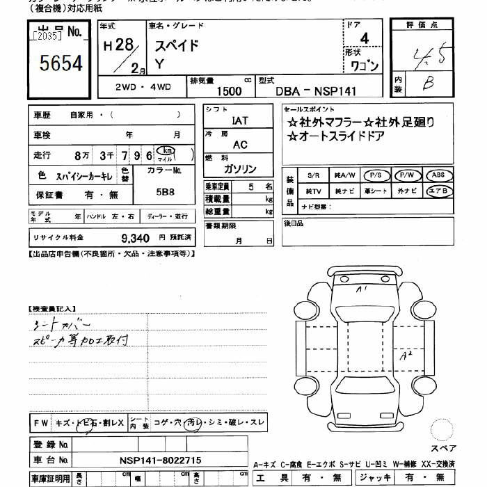 Toyota Spade, 2016 года - Лот№5654 ★4.5