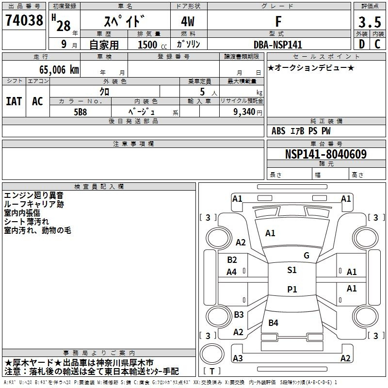 Toyota Spade, 2016 года - Лот№74038 ★3.5