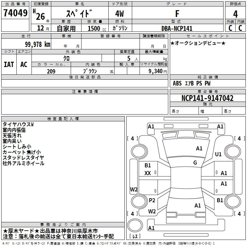 Toyota Spade, 2014 года - Лот№74049 ★4