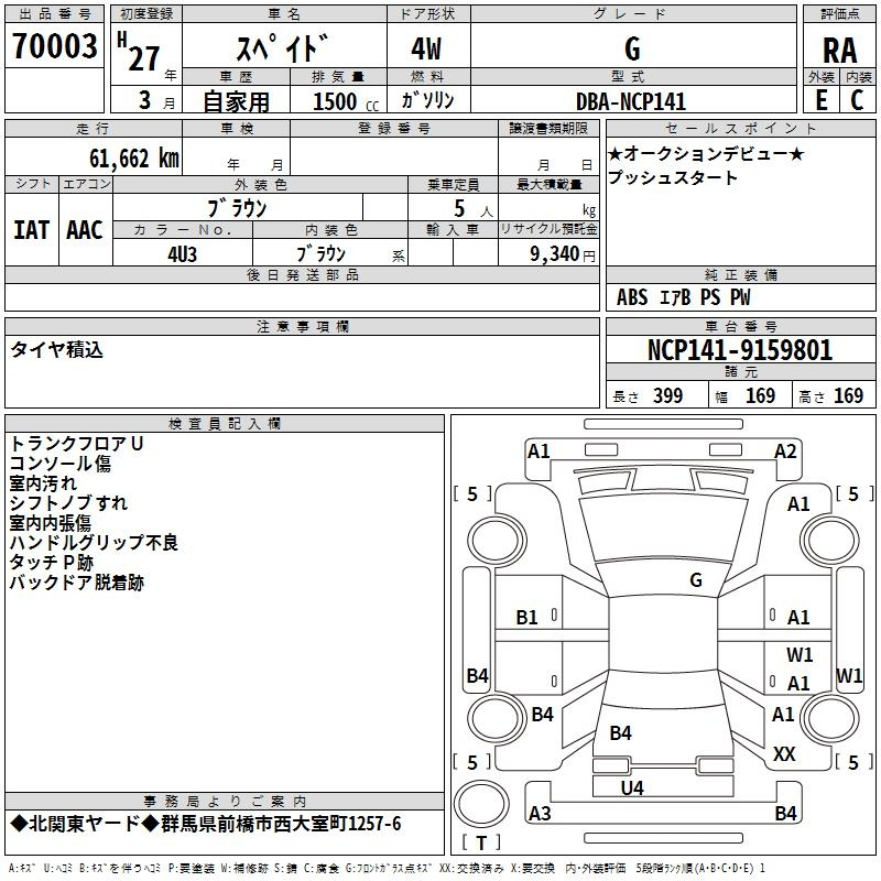 Toyota Spade, 2015 года - Лот№70003 ★RA