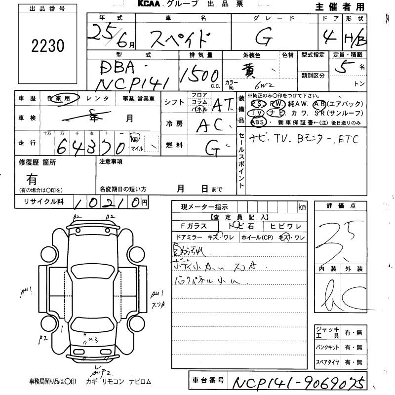 Toyota Spade, 2013 года - Лот№2230 ★3.5