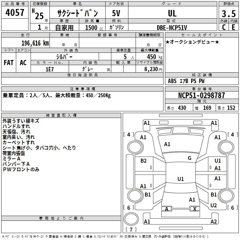 Toyota Succeed, 2013 года - Лот№4057 ★3.5