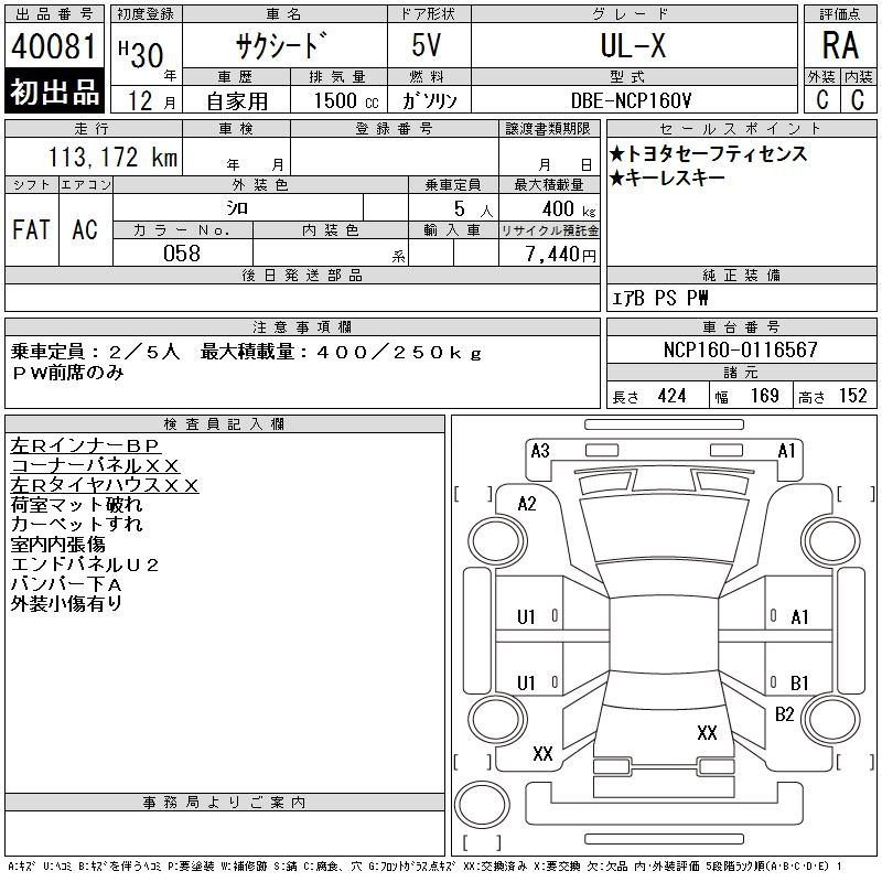 Toyota Succeed, 2018 года - Лот№40081 ★RA
