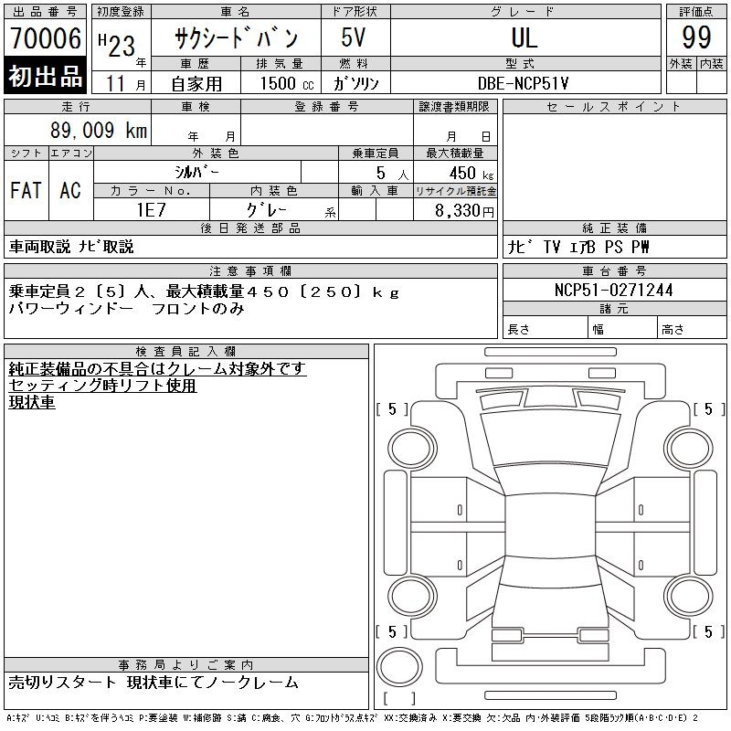 Toyota Succeed, 2011 года - Лот№70006 ★99