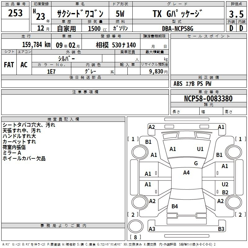 Toyota Succeed, 2011 года - Лот№253 ★3.5