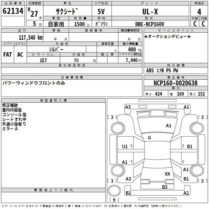 Toyota Succeed, 2015 года - Лот№62134 ★4