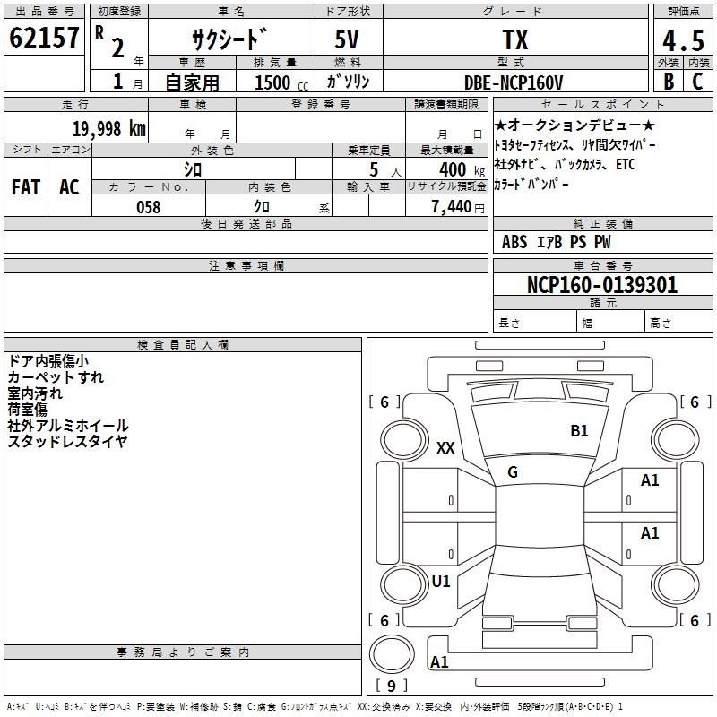 Toyota Succeed, 2020 года - Лот№62157 ★4.5