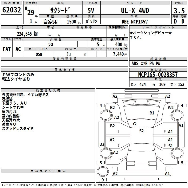 Toyota Succeed, 2017 года - Лот№62032 ★3.5