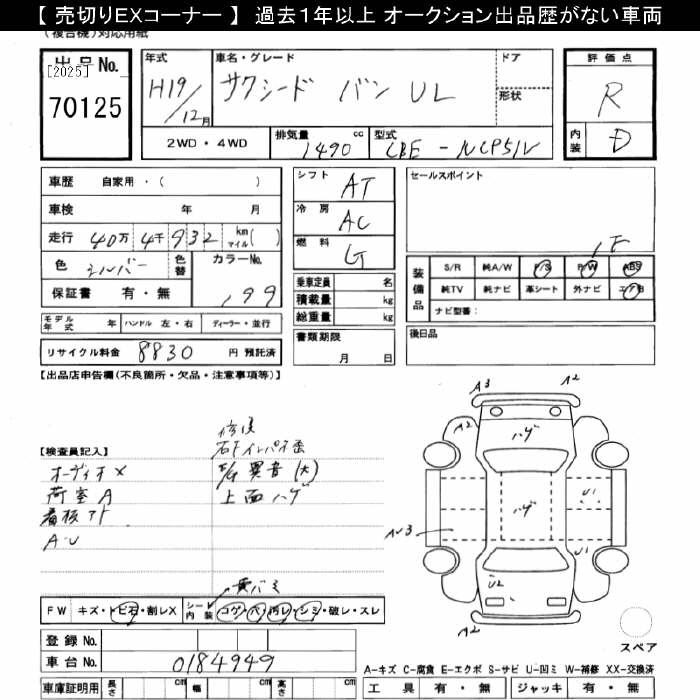 Toyota Succeed, 2007 года - Лот№70125 ★R