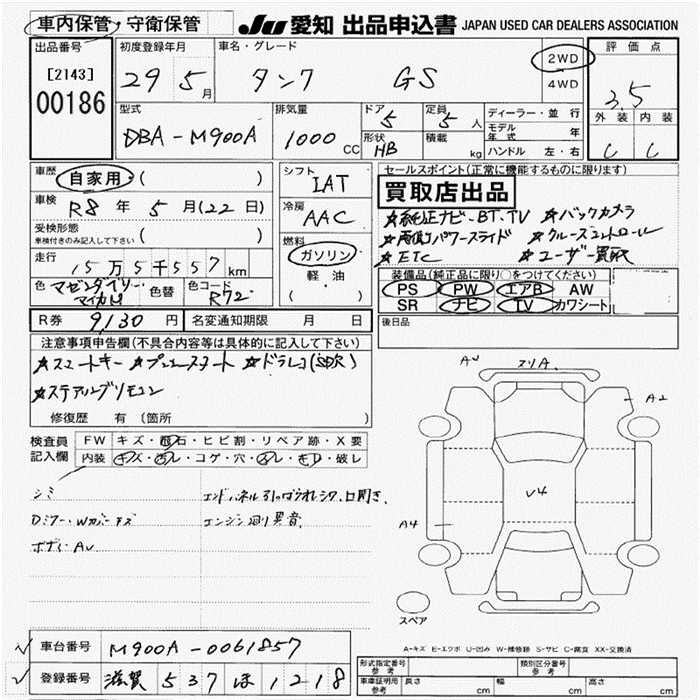 Toyota Tank, 2017 года - Лот№186 ★3.5