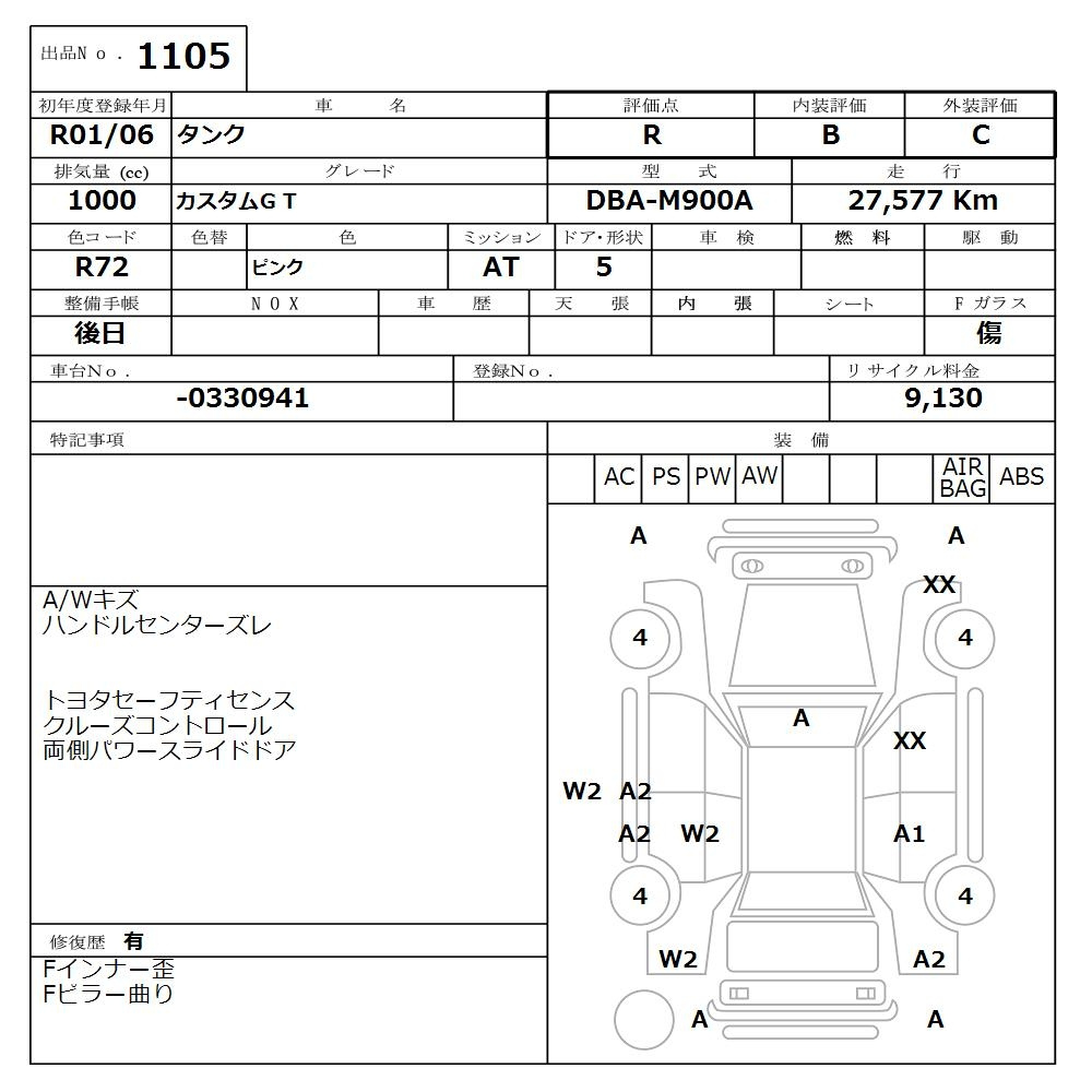 Toyota Tank, 2019 года - Лот№1105 ★R