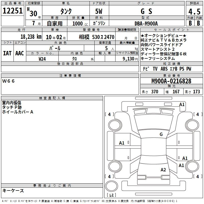 Toyota Tank, 2018 года - Лот№12251 ★4.5