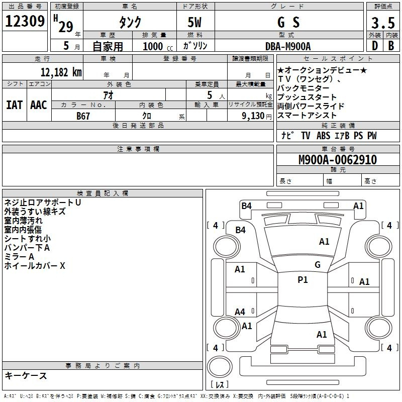 Toyota Tank, 2017 года - Лот№12309 ★3.5