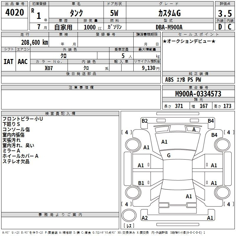 Toyota Tank, 2019 года - Лот№4020 ★3.5