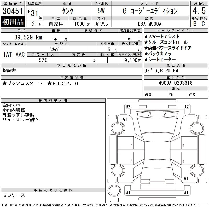 Toyota Tank, 2019 года - Лот№30451 ★4.5