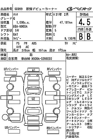 Toyota Tank, 2019 года - Лот№60099 ★4.5