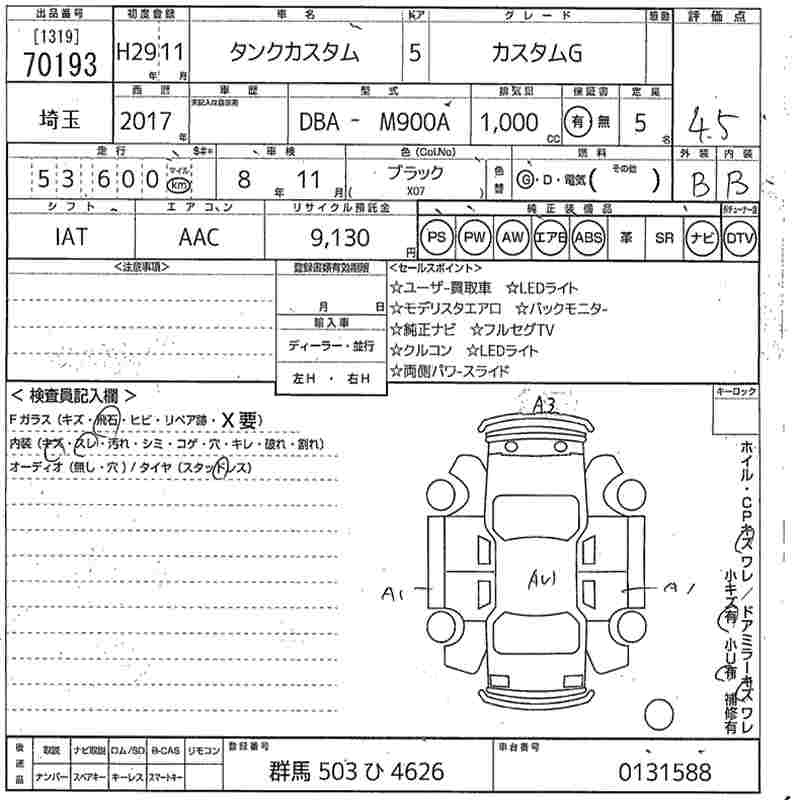 Toyota Tank, 2017 года - Лот№70193 ★4.5