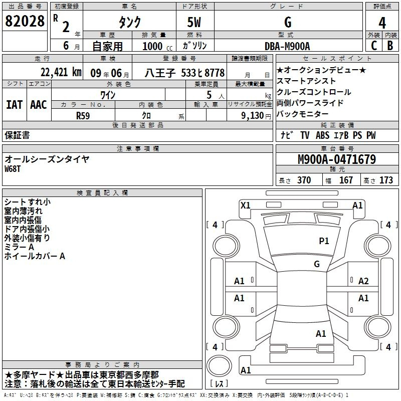 Toyota Tank, 2020 года - Лот№82028 ★4