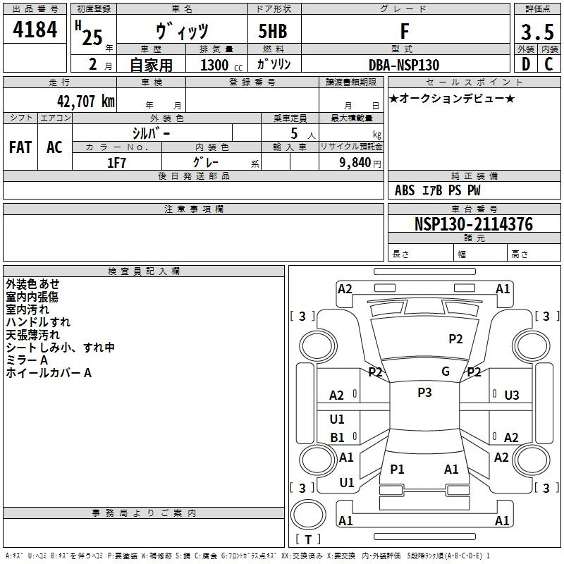 Toyota Vitz, 2013 года - Лот№4184 ★3.5