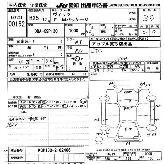 Toyota Vitz, 2013 года - Лот№152 ★3.5