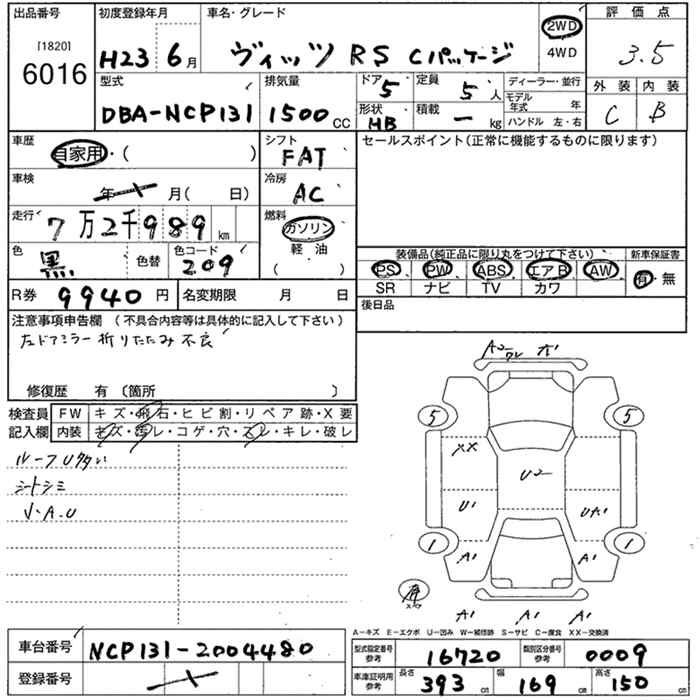 Toyota Vitz, 2011 года - Лот№6016 ★3.5