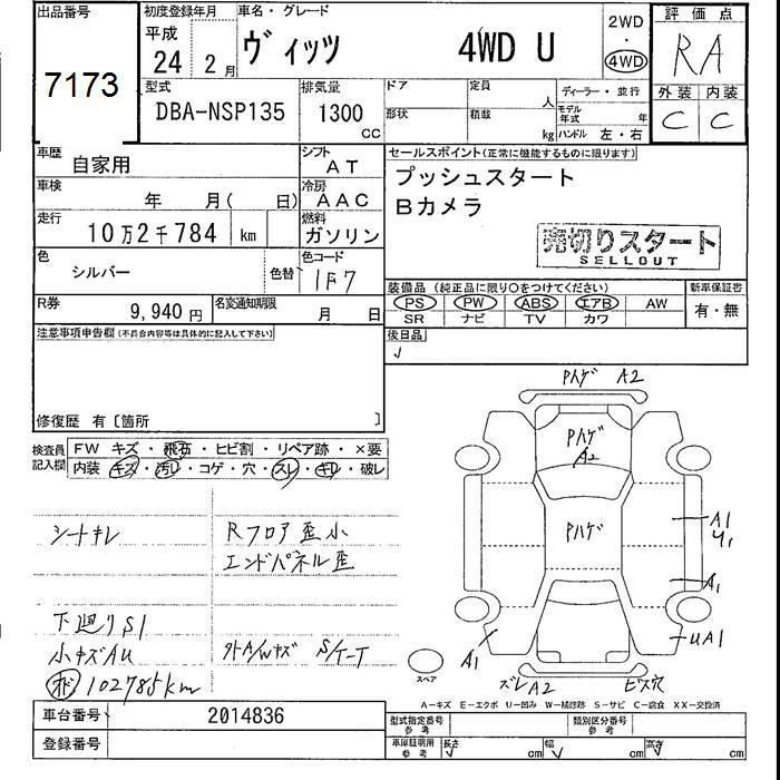 Toyota Vitz, 2012 года - Лот№7173 ★RA
